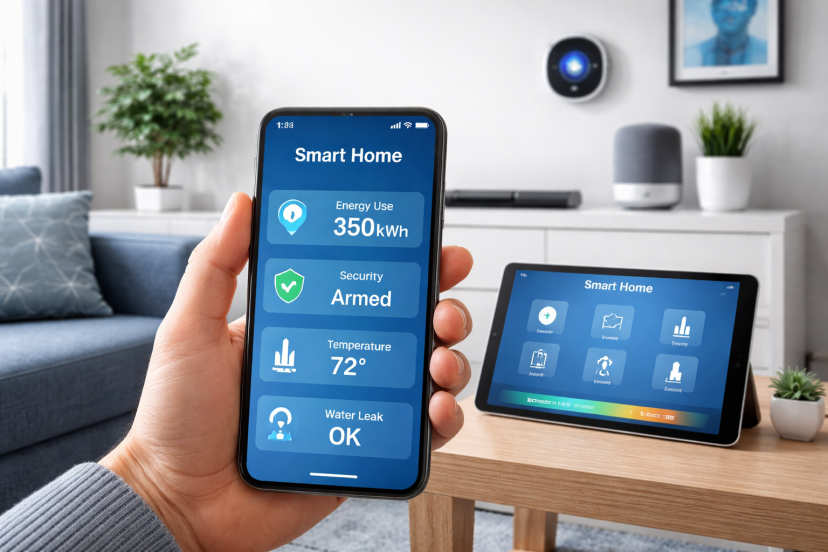 Smart plugs and energy monitors track real-time usage.